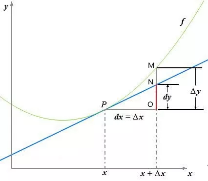 莱布尼茨就给这两个趋近于0却又不等于0的Δx和Δy重新取了一个名字:dx和dy,并把它们称为“微分”。